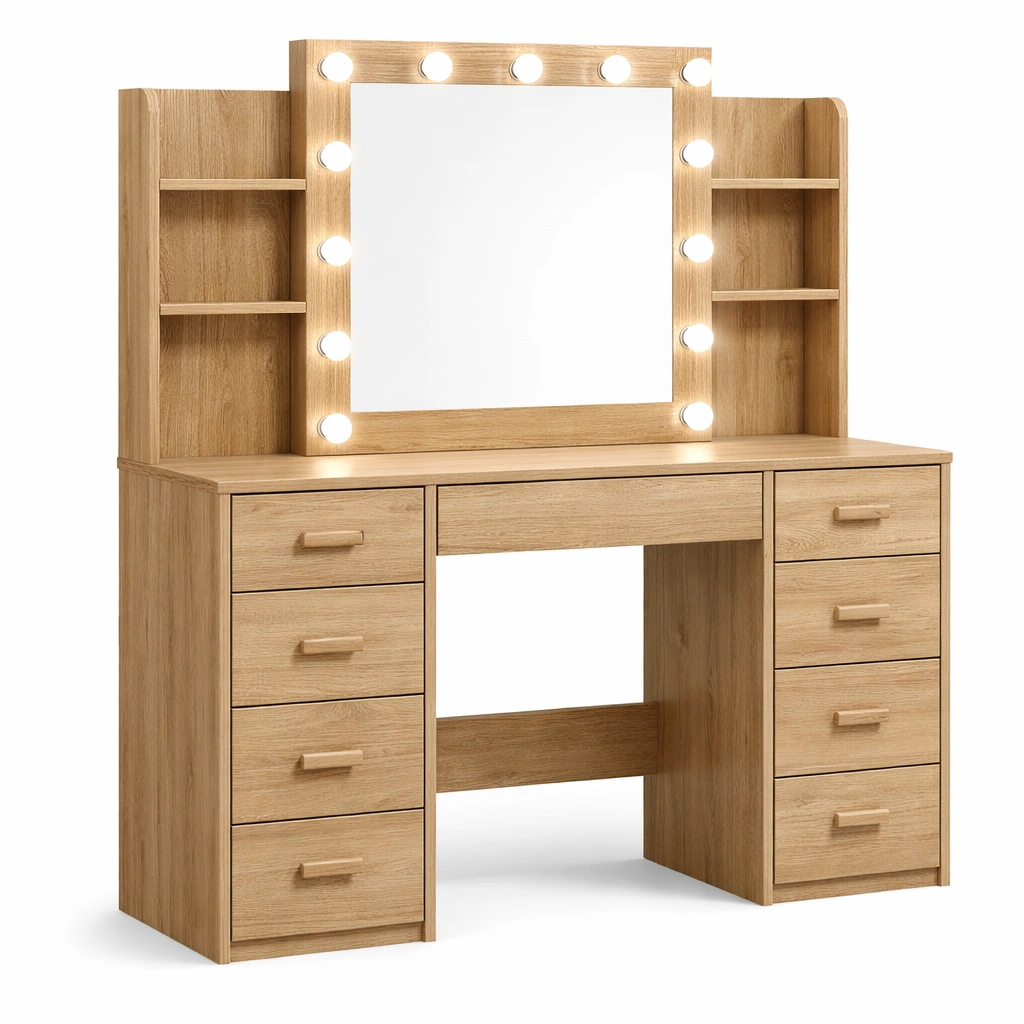 Tocador de madera de roble con espejo y luces LED