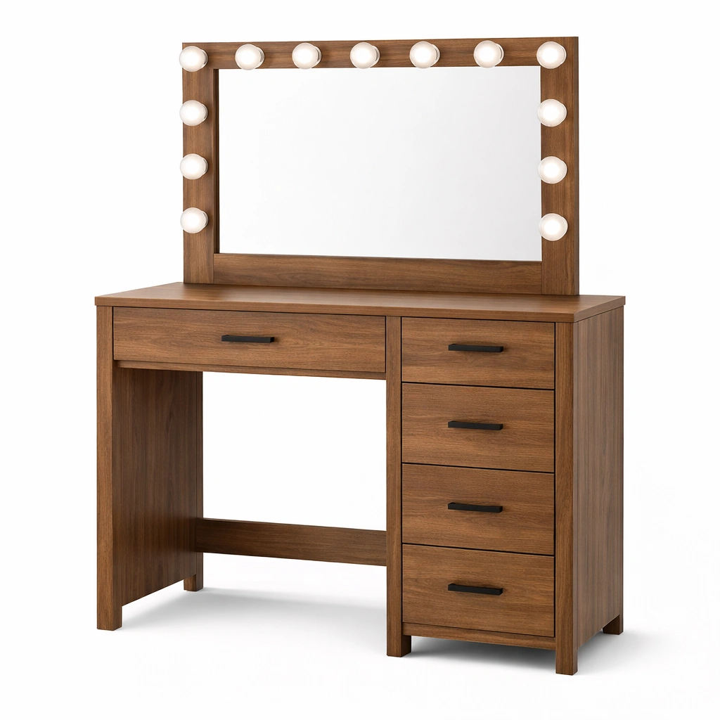 Tocador de madera con espejo y luces