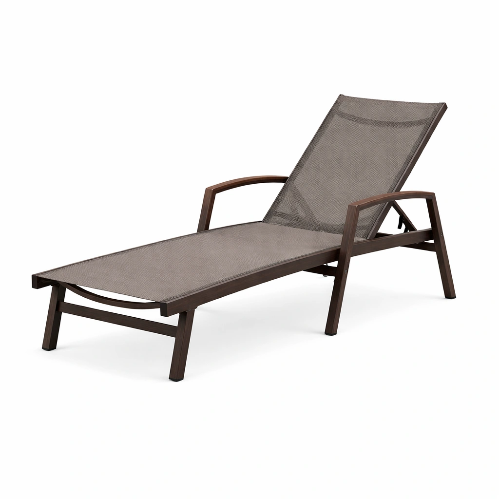 Tumbona de metal marrón y textileno